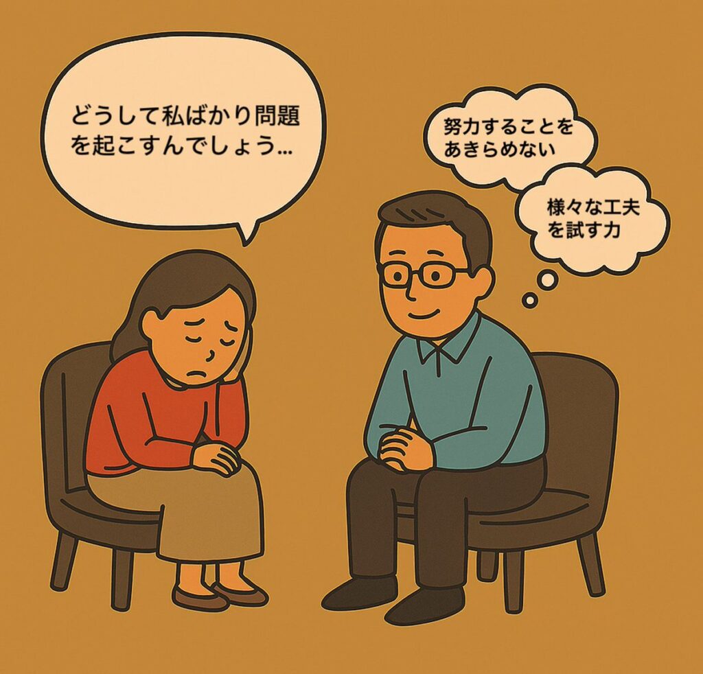 努力や工夫の力を来談された方とも共有できたときには、それをリフレイムと呼ぶことがあります。